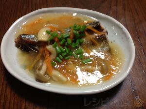 さんまをさらに盛り付け、4のみぞれあんをかけ、小口切りにした万能ネギを散らす。